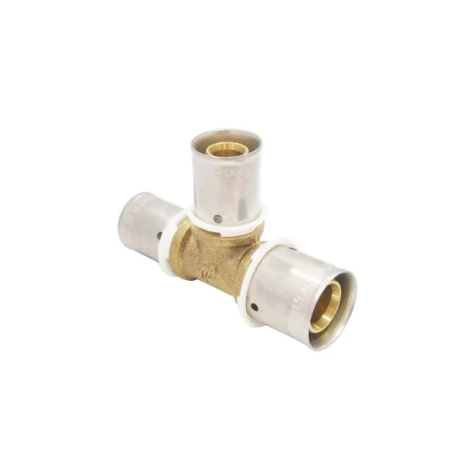 La conception combine un corps en laiton et une bague de sertissage qui immobilise le tube sur la tétine, garantissant une jonction indémontable sans soudure. Le té inégal PER à sertir est compatible avec de nombreuses mâchoires de presse : RF, H, RFz, U, CO, VX, ce qui facilite l’intégration à votre outillage existant. Il est proposé en plusieurs combinaisons de diamètres usuels, pour s’adapter au tracé et aux besoins hydrauliques de vos réseaux.